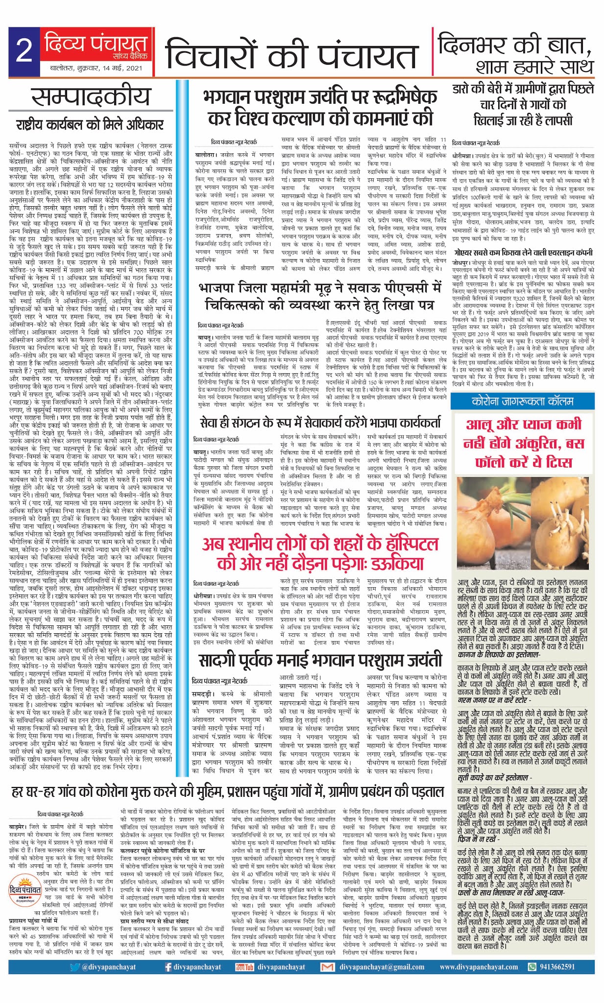 सभी प्रकार के विज्ञापन प्रकाशन के लिए सम्पर्क करें हार्दिक बधाई, शोक संदेश, आम सूचना, पुण्य तिथि, नाम परिवर्तन, लोक सूचना, नोटिस एतराज, क्लासिफाइड दिव्य पंचायत सांध्य दैनिक आप हमे न्यूज भेज सकते है --- email ~ Divyapanchayat@gmail. com करना राम मांजू (प्रबंध संपादक) whatsaap :-9772529683, 9166522591